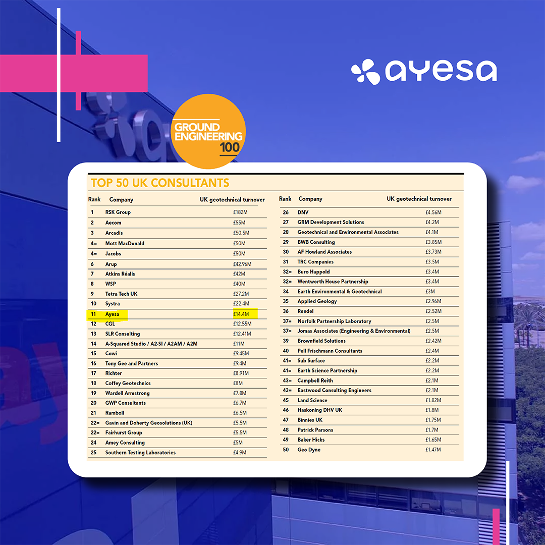 Ayesa Engineering is ranked among the top ground engineering consultants in the UK