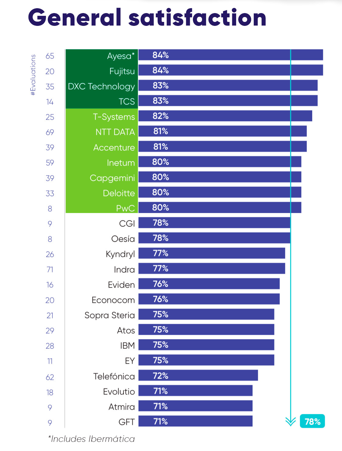 This year, Ayesa has achieved 84% for overall customer satisfaction. This is the highest of any provider and represents a 3% increase compared to last year, a clear reflection of the company’s unfaltering commitment to excellence. This is also higher than the top score achieved in many other countries where the study is carried out.