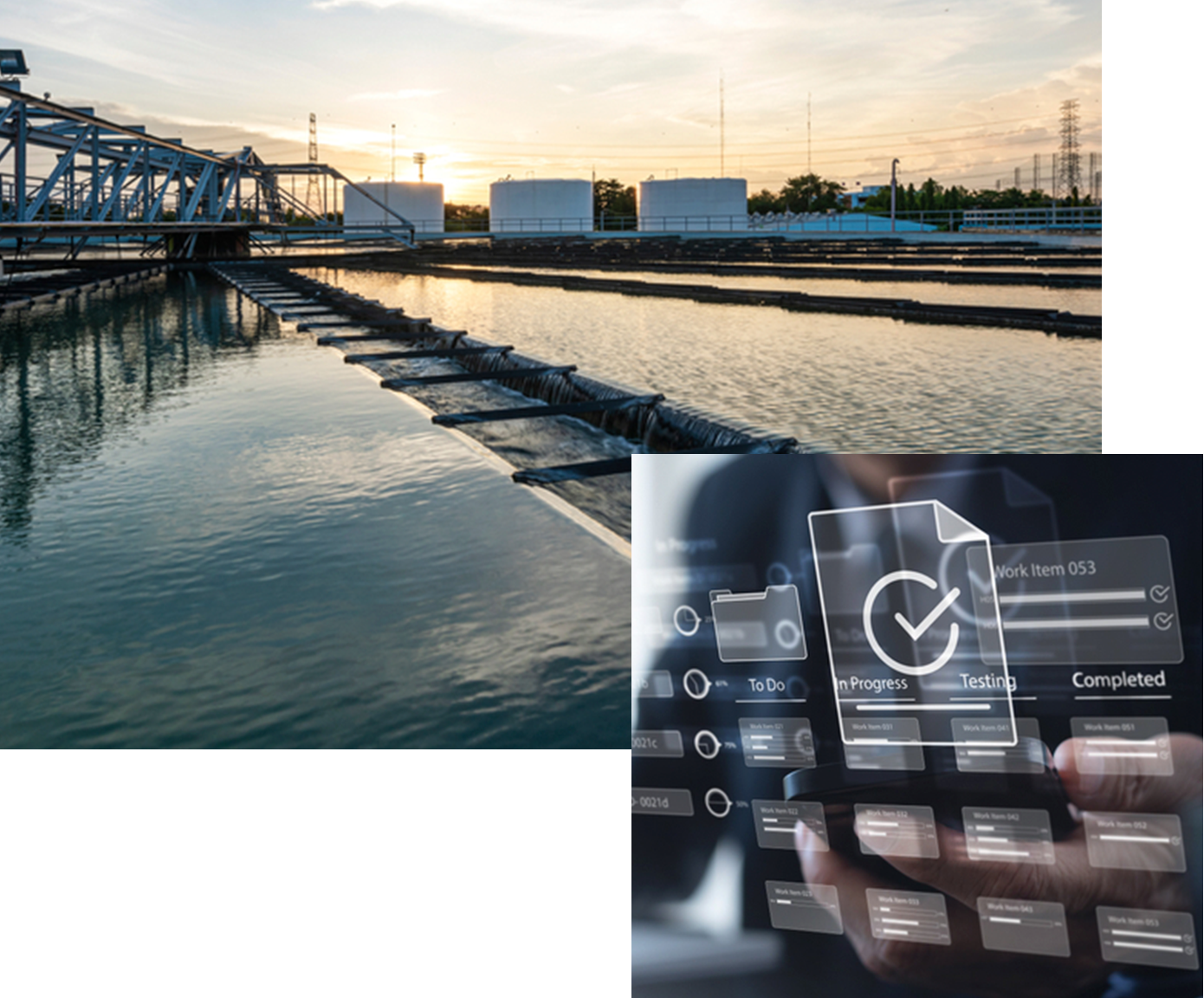 - Two large storage tanks for treated drinking water.