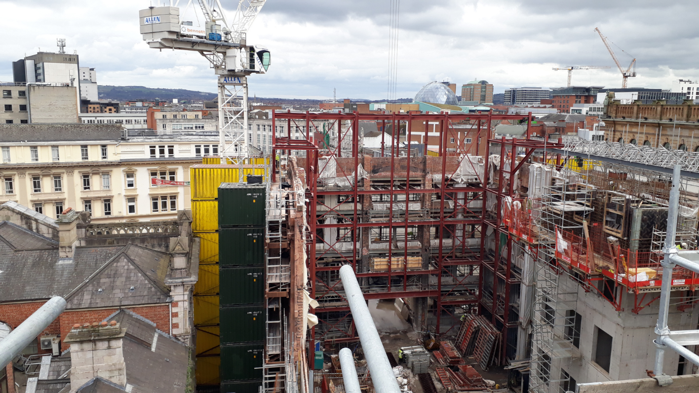 Effective collaboration with specialist stonework contractor Creggstone and main contractor Bennet was crucial, enabling simultaneous progress on stonework, brickwork, and ironwork repairs, alongside the erection of a new internal steel structure by DBFL. This coordinated effort was essential in ensuring the structure’s safety and integrity while honoring its historical significance.