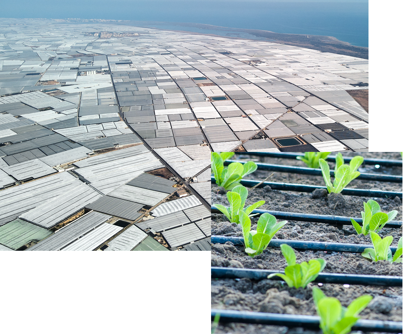 The Almerian region of Campo de Dalías, including its major town El Ejido, is renowned for having one of the highest concentrations of greenhouses globally. Since the 1980s, Almería in southern Spain has developed the largest concentration of greenhouses in the world, covering 26,000 hectares. The greenhouses reflect so much sunlight into the atmosphere that they are cooling the province according to recent research. This high-value agricultural system requires substantial water, and its rapid expansion in recent decades has increased the need for additional resources.