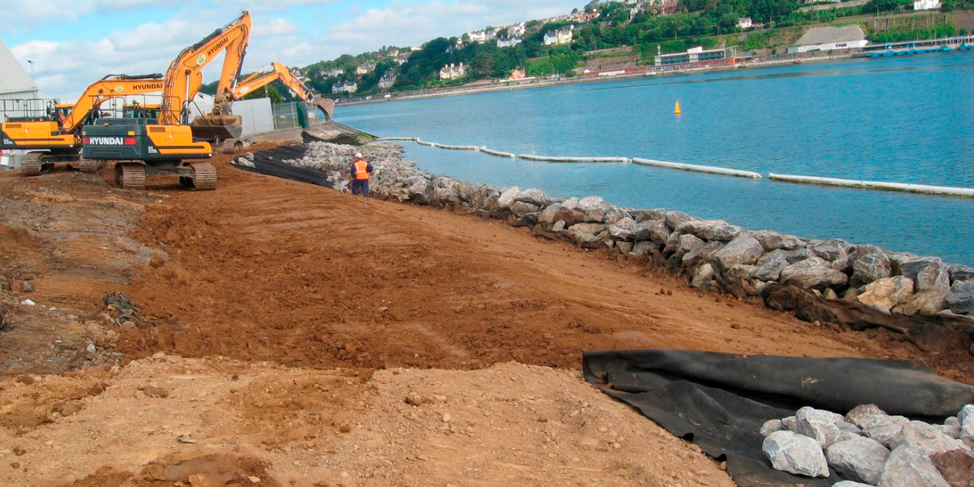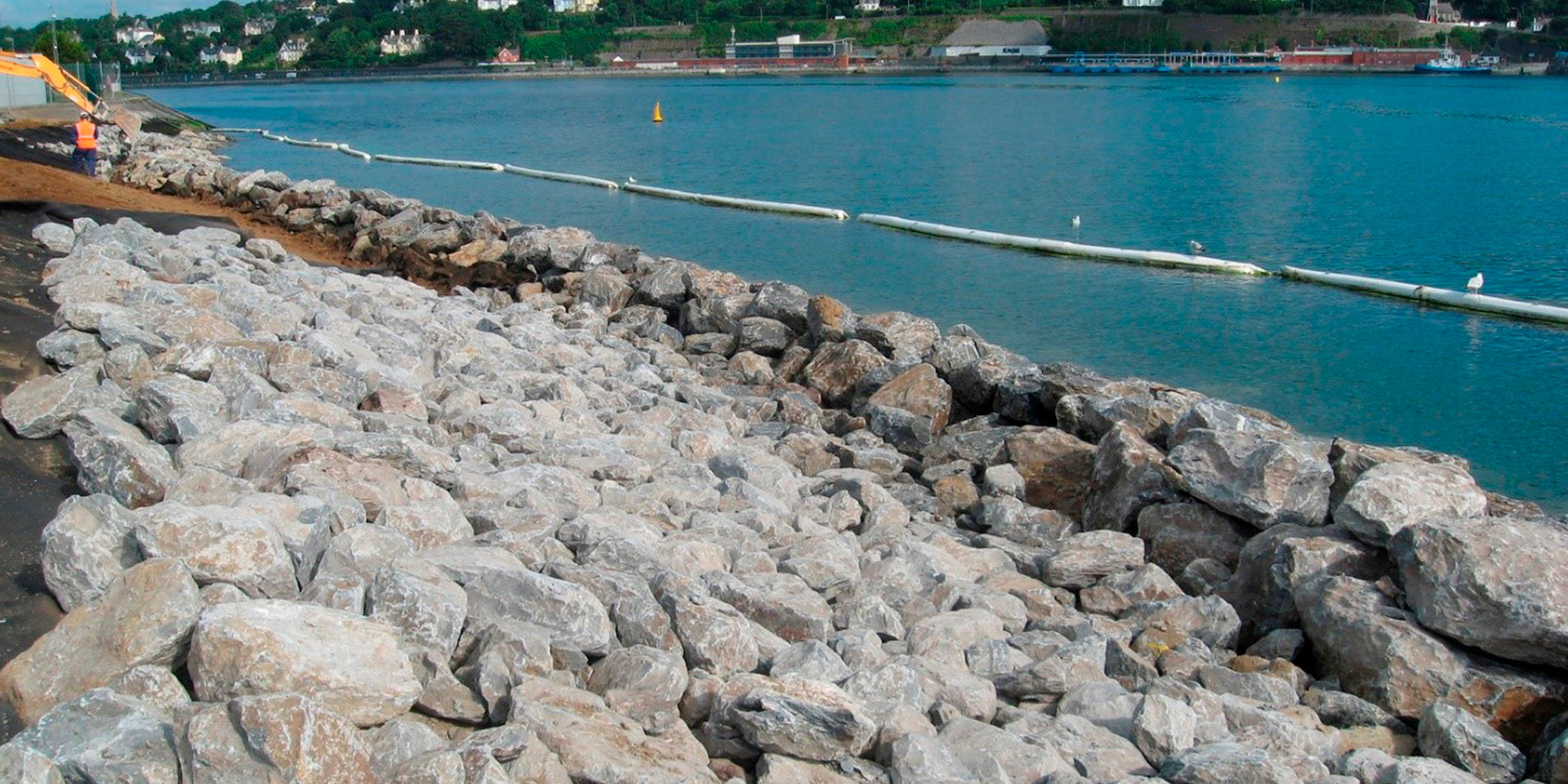 The contractor, PJ Hegarty & Sons, appointed Ayesa Engineering to provide design consultancy services for the redevelopment and remediation of East Tip Haulbowline Island. Our responsibilities included the temporary works and detailed design and construction support for approximately 1 km of a coastal revetment structure, which would serve as a coastal defence for the remediated public amenity park. The remediation works posed significant technical and environmental risks, in addition to strict conditions set out by the EPA Waste Licence.
