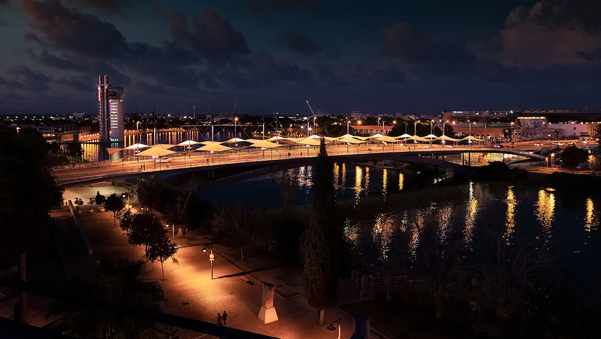 The Cristo de la Expiración Bridge, also known as the Cachorro Bridge, is an urban viaduct located in Seville’s historic district. It replaced a land mass that was blocking the river to prevent flooding of the Guadalquivir River in Seville.
