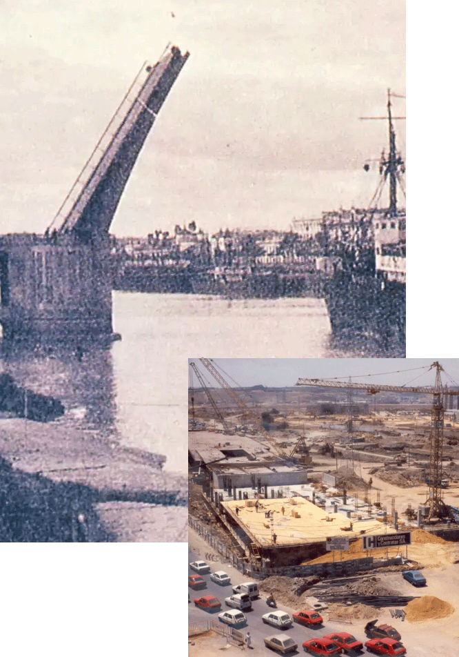 The construction of this new defense allowed for the removal of the blockage and its replacement with a bridge. As part of the 1992 Exposition of Seville, the city utilized a hydraulic scheme to defend itself from flooding and redeveloped the dock with new bridges, including the Cachorro Bridge. The bridge is named after the Cachorro Christ, whose procession takes place during Holy Week from the local Patrocinio chapel.