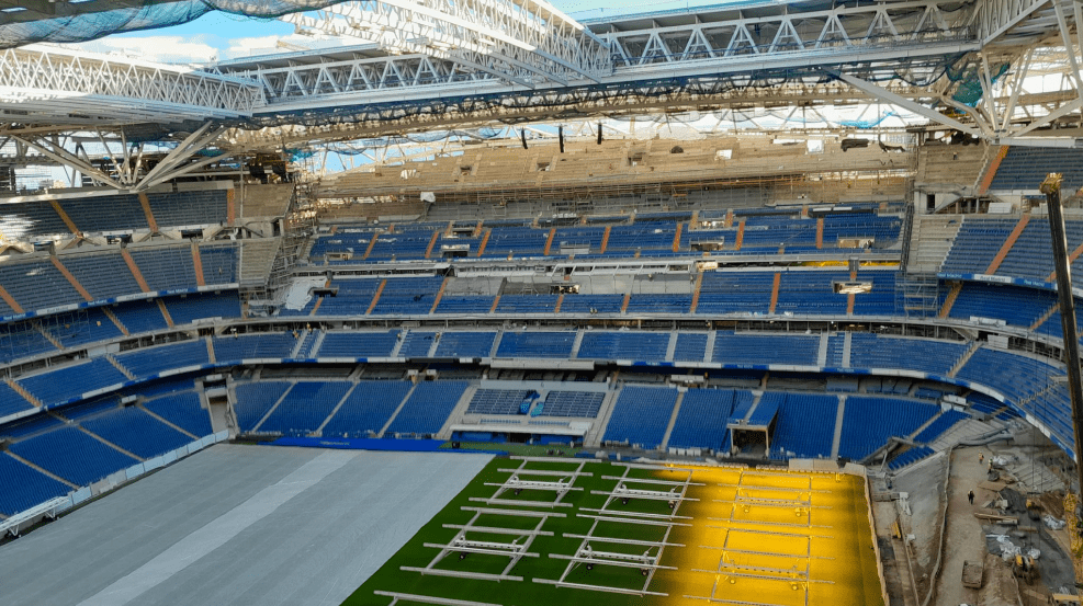 The most impressive feat of the Santiago Bernabéu redevelopment project was the successful implementation of a retractable pitch system, which had never been used in a football stadium before. The system consists of rectangular turf divided into trays that can be stored in a hypogeum located underneath the stadium. This innovative solution allows for the freeing up of the field’s surface, providing 10,000 square meters of space for Real Madrid’s business area to host events and concerts while also protecting the football playing surface.