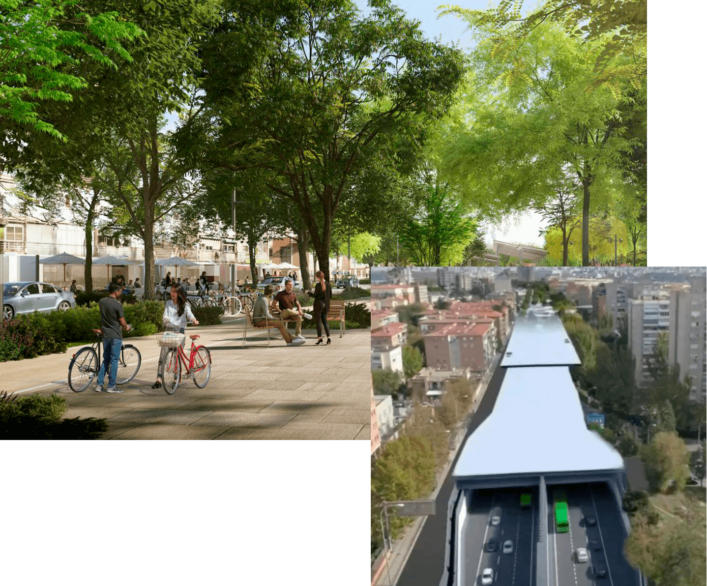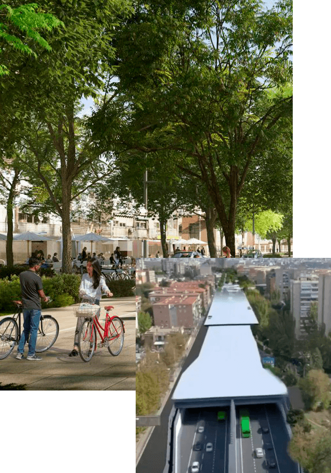 Burying the A-5 and transforming its surface into a boulevard will reduce traffic and pollution emissions by 90% while improving pedestrian safety. Walking routes will be enhanced through wider sidewalks and 33 new pedestrian connections—more than double the previous 16.