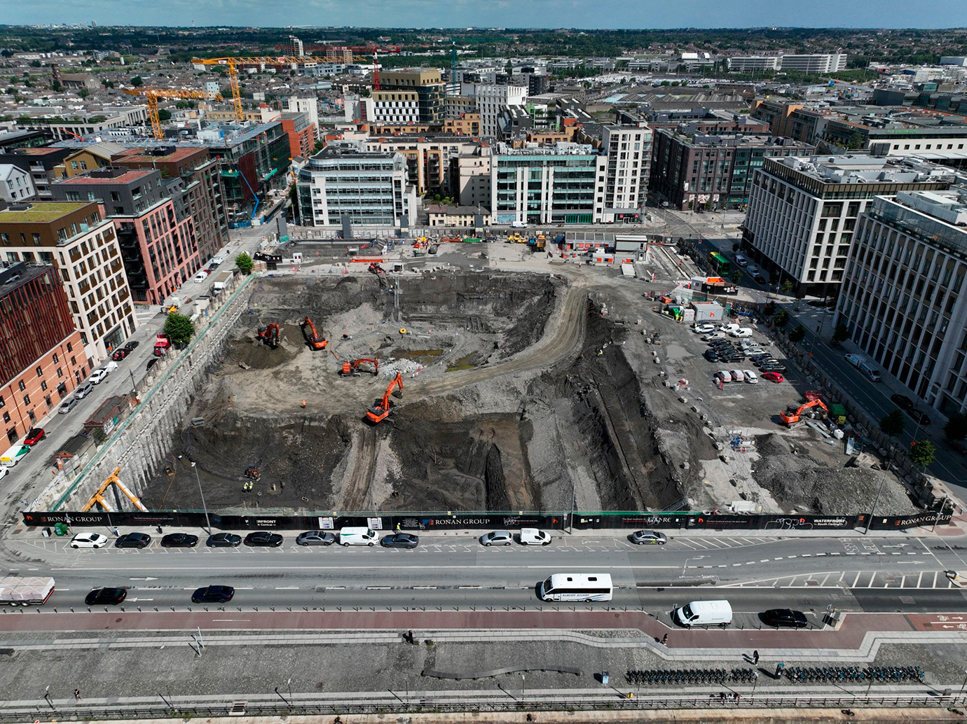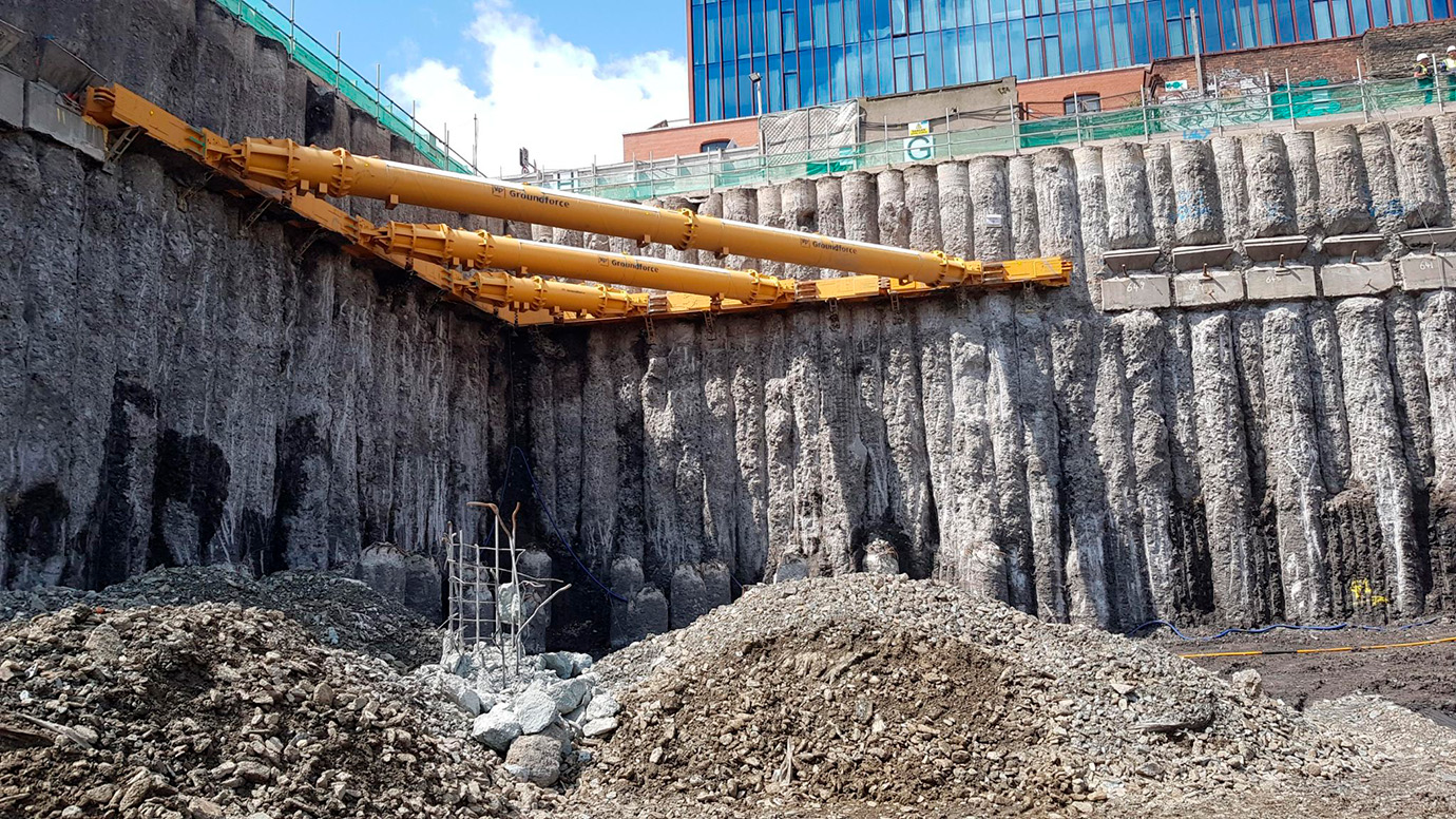 Employed by the contractor PJ Hegarty & Sons and foundations experts, PJ Edwards & Sons, our role is to provide in-depth geotechnical expertise. We’ve been responsible for designing the secant pile wall and implementing tie-back anchors. This contribution is crucial to ensuring the structural stability and longevity of the 3-level basement, one of the deepest in Dublin city.