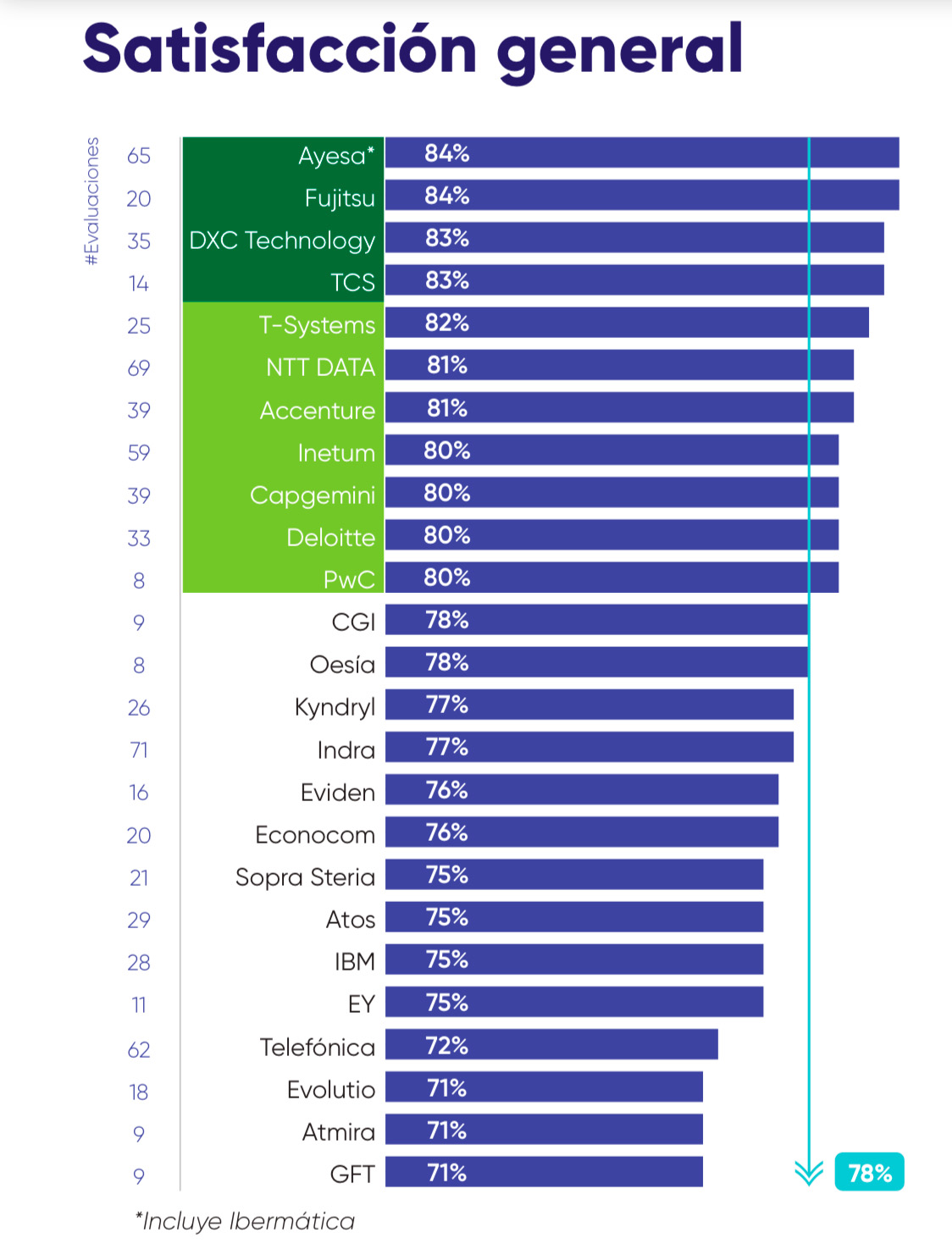 El informe valora los servicios TI prestados por los 25 mayores proveedores del país y otras firmas especializadas en tecnologías punteras y tiene en cuenta únicamente la calificación de cada cliente en relación a los servicios prestados por sus proveedores.